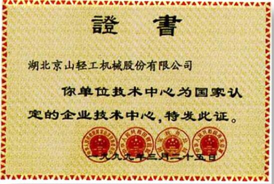 J.S. Corrugating Machinery Co., Ltd. (J.S. Machine) ha construido el centro de tecnología empresarial desde 1998; En marzo de 1999, J.S. El centro de tecnología de maquinaria fue certificado como un centro de tecnología empresarial de nivel estatal por los cuatro ministerios: la Comisión Estatal de Economía y Comercio, la Administración de Impuestos del Estado, el Ministerio de Finanzas, la Administración General de Aduanas, etc.