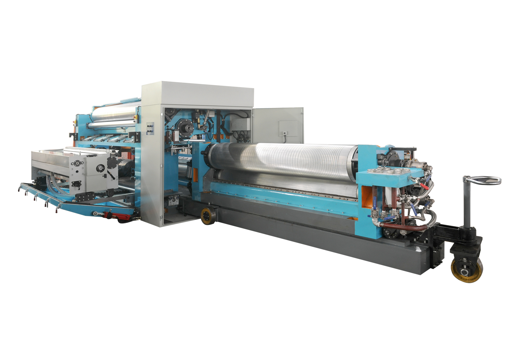 - Big diameter corrugating rolls (with diameters of Φ478/Φ478) ensure perfect flute formation at high speed, made of high strength chrome molybdenum alloy steel, and induction hardened with hardness up to HRC55~60.